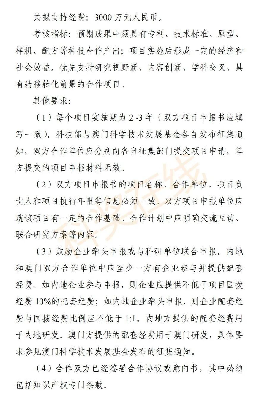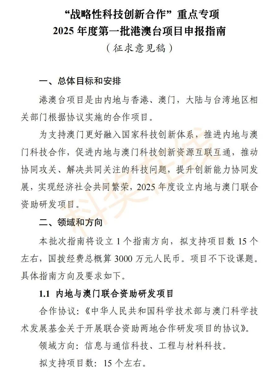 2.“战略性科技创新合作”重点专项2025年度第一批港澳台项目申报指南(征求意见稿)
