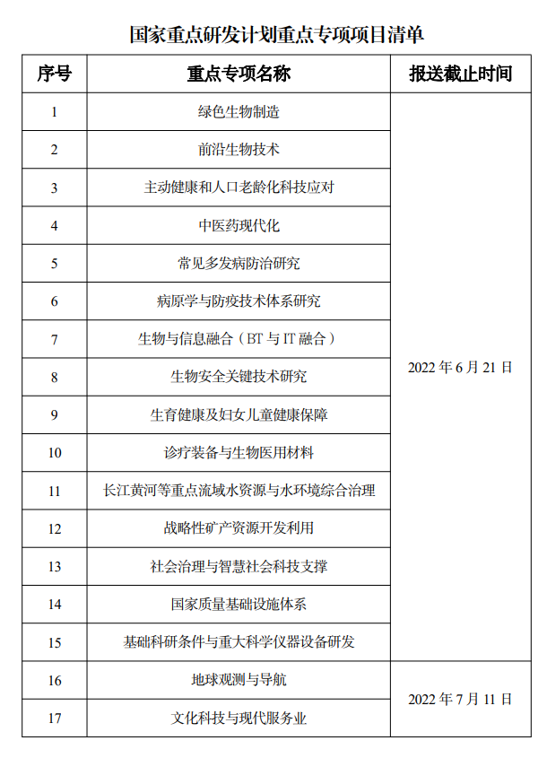 关于组织申报国家重点研发计划“绿色生物制造”等17个重点专项2022年度项目的通知