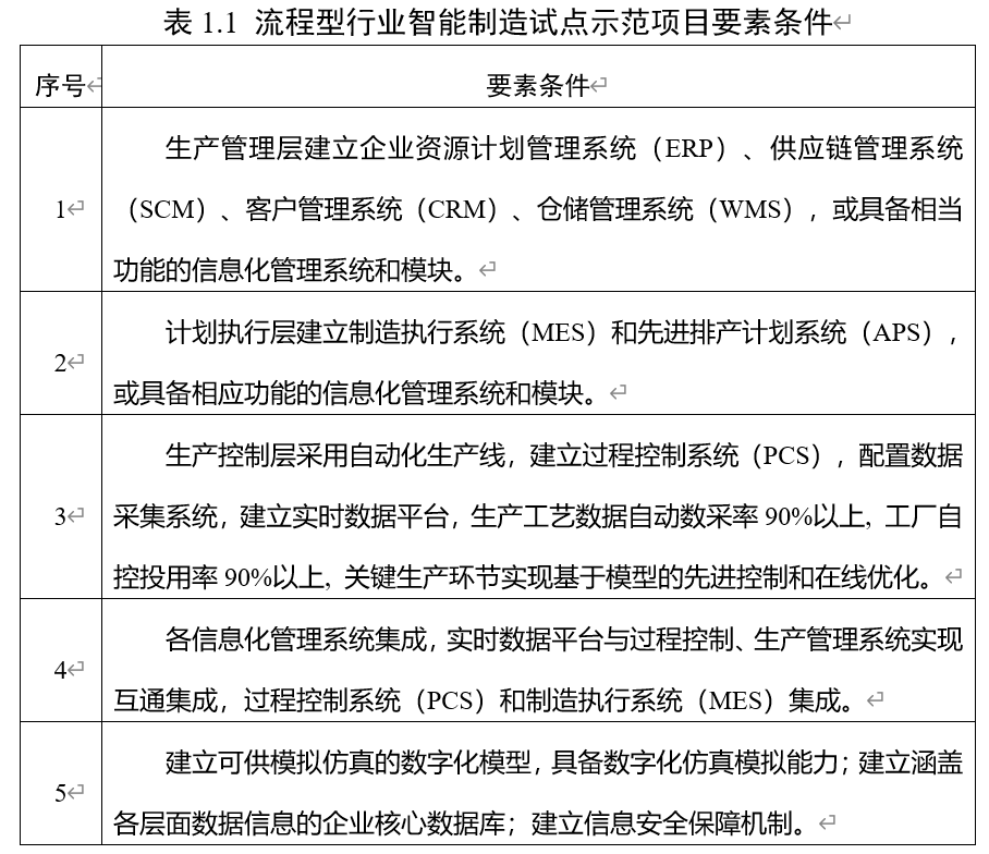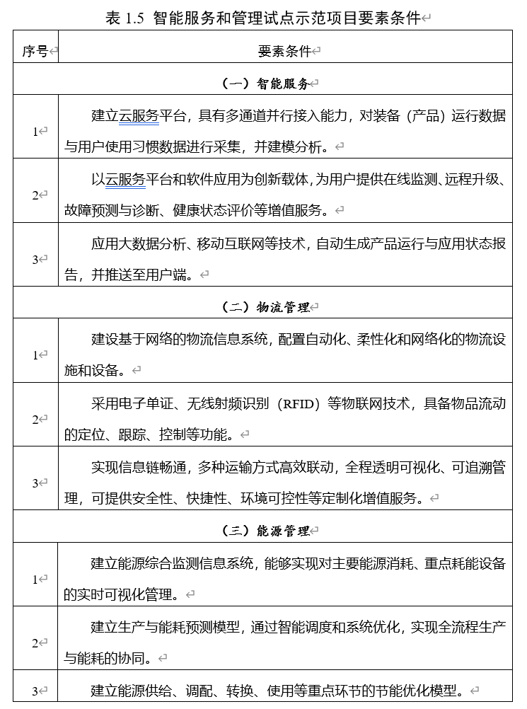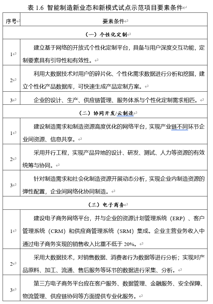 (一)项目符合智能制造试点示范项目要素条件中相应类别的具体要求,详见表1.1-表1.6。