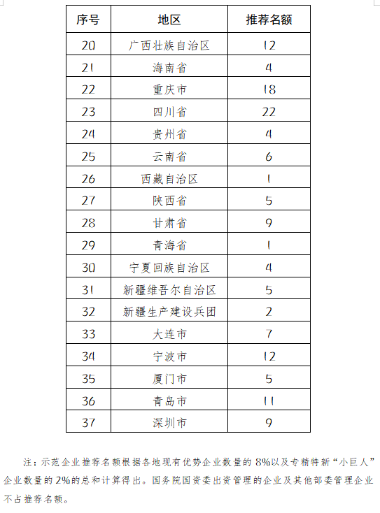 各地方知识产权局组织对通过测评的申报企业开展评审,综合测评和评审情况,确定优势企业和示范企业推荐名单,将评审情况和推荐名单报送国家知识产权局。每个地方优势企业推荐名额最多不超过100家,示范企业按照分配名额推荐。“专精特新”中小企业予以优先推荐。