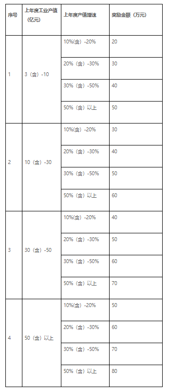 对在辖区注册,上年度产值在3亿元以上且实现10%以上的正增长的电子信息、计算机、机械、材料等规上先进制造业企业,给予主要负责人/高级管理人员/技术团队负责人最高80万元的经营管理人才奖励。同一企业每年限报1人。