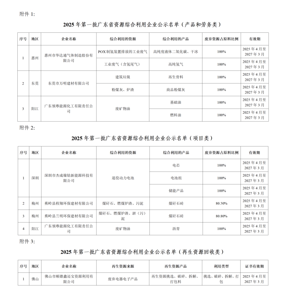 附件:1、2025年第一批广东省资源综合利用企业公示名单(产品和劳务类)