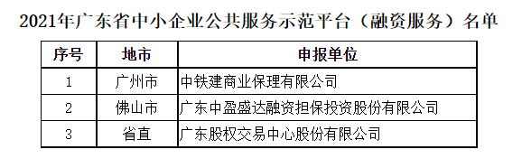 关于公布2021年广东省中小企业公共服务示范平台(融资服务)名单的公示